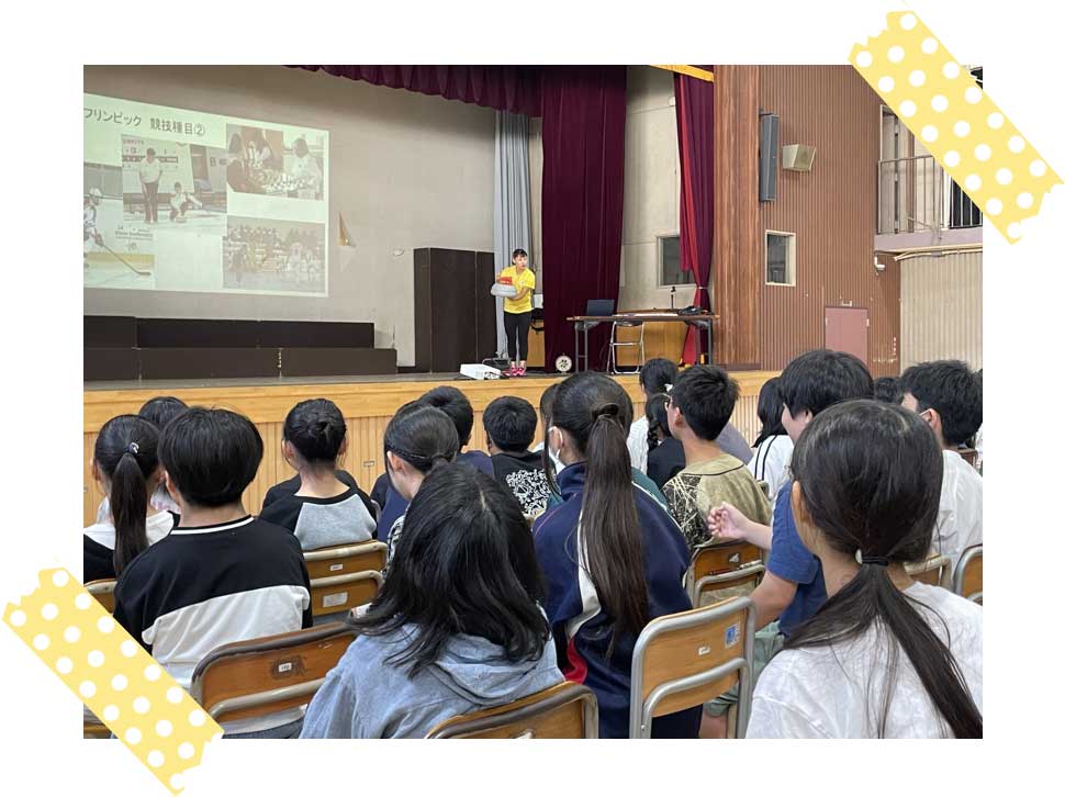デフカーリングの松橋早友梨選手からきこえないことやカーリングとの出会いについて講演いただきました。また、手話表現も学びました。
